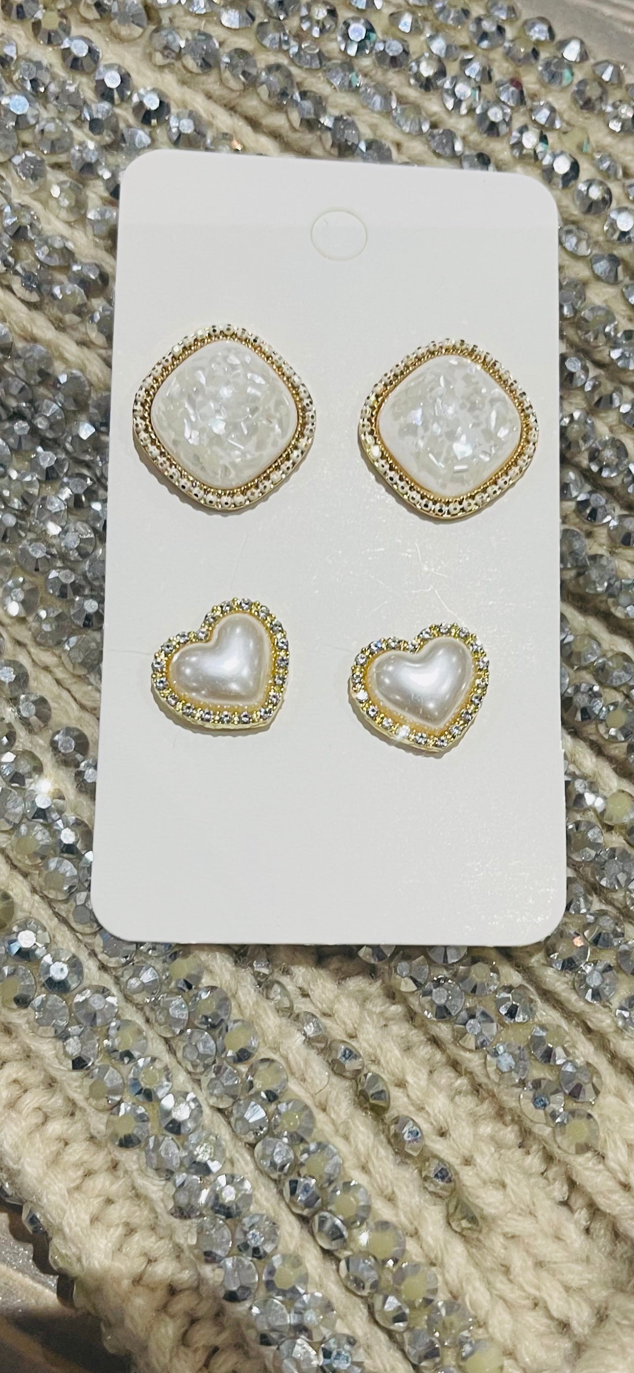 2 par/set hjärtformade/fyrkantiga strassörhängen med pärlimiitation