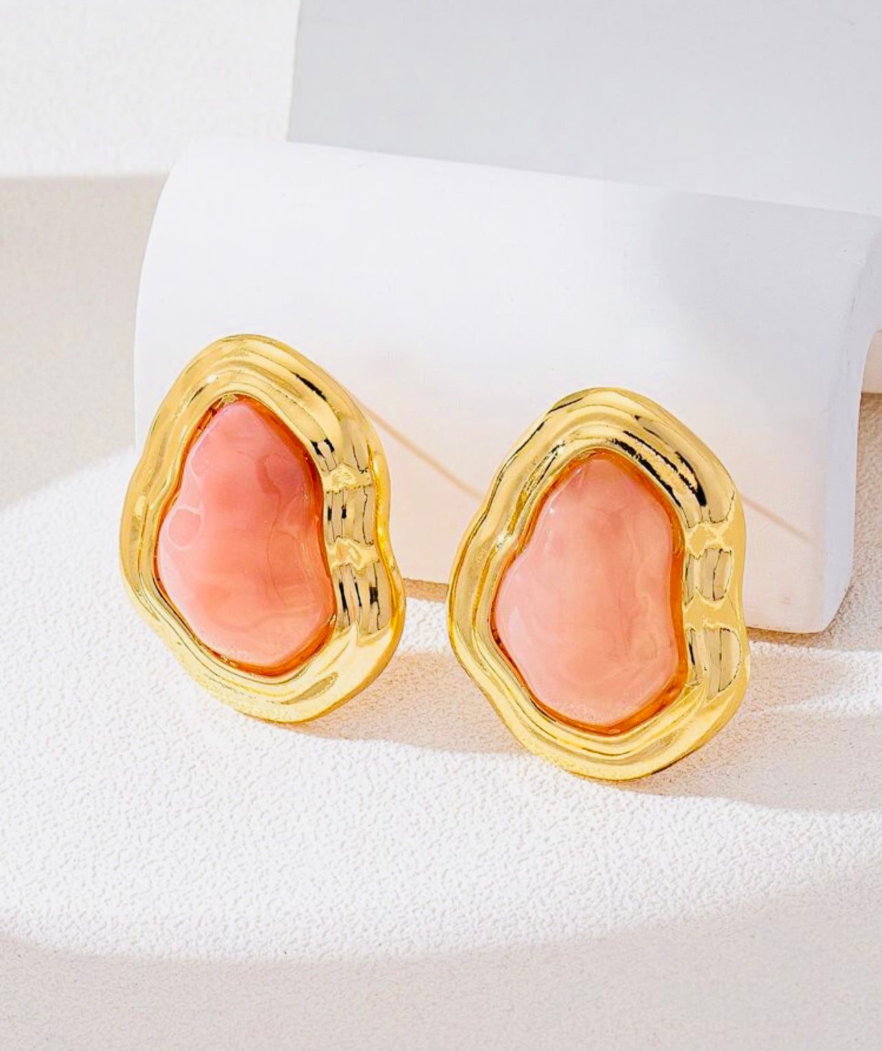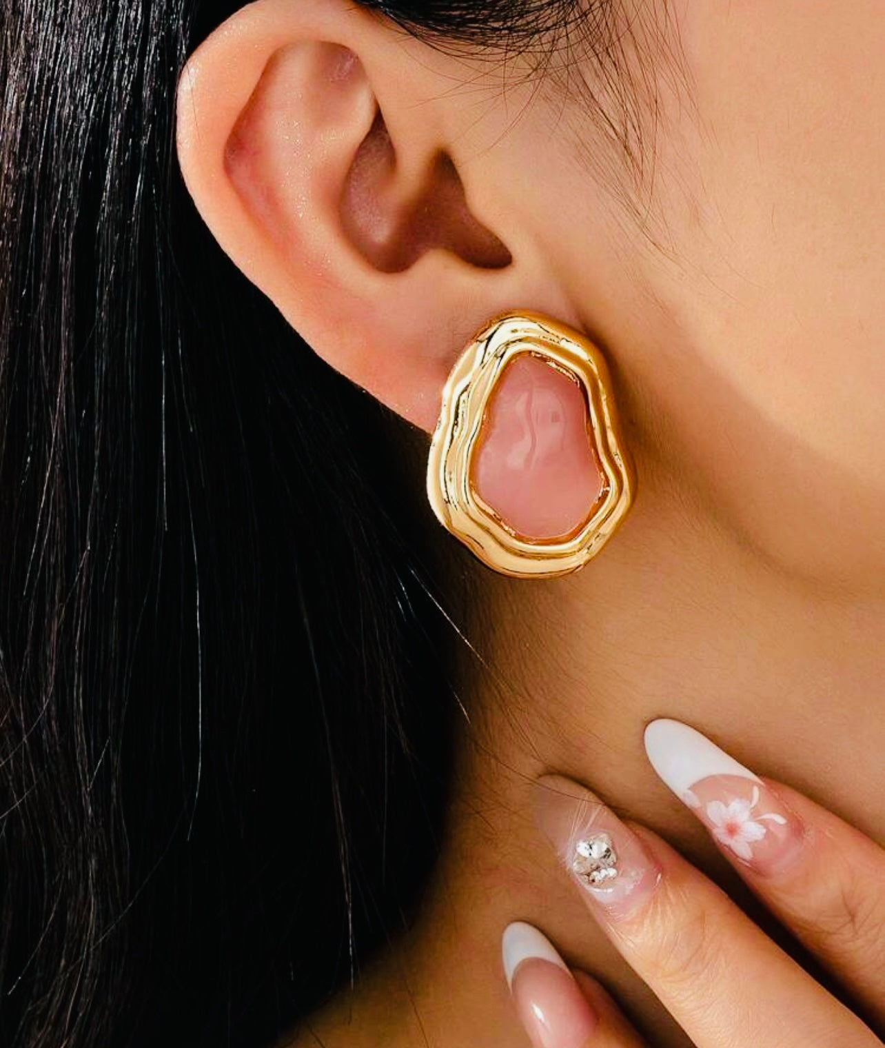Asymmetriska retrochica örhängen, i gammelrosa toner