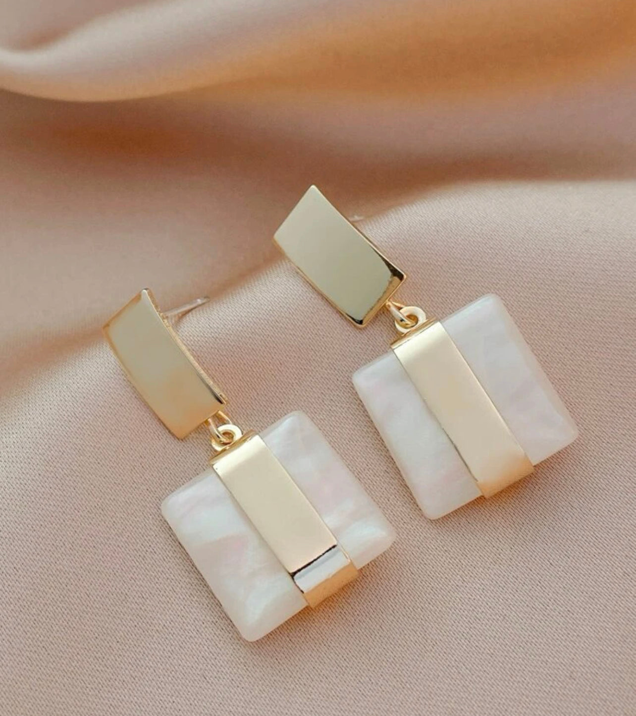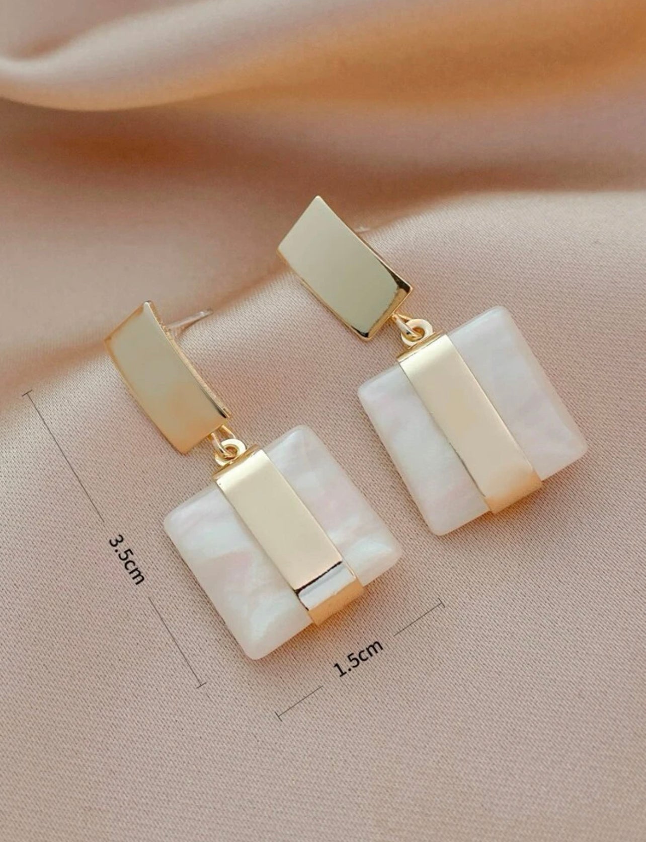 Fyrkantiga örhängen med skimmer och guldfärgad detalj.