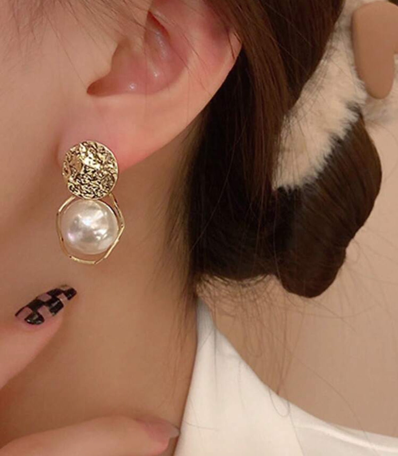 Guldfärgade örhängen med elegant pärla i mitten