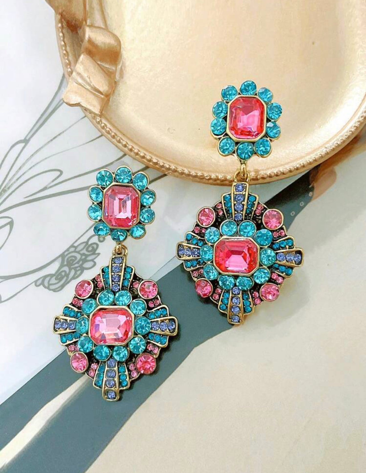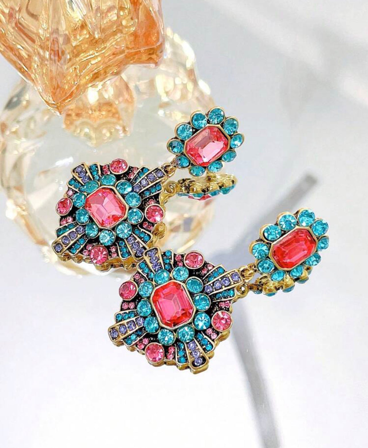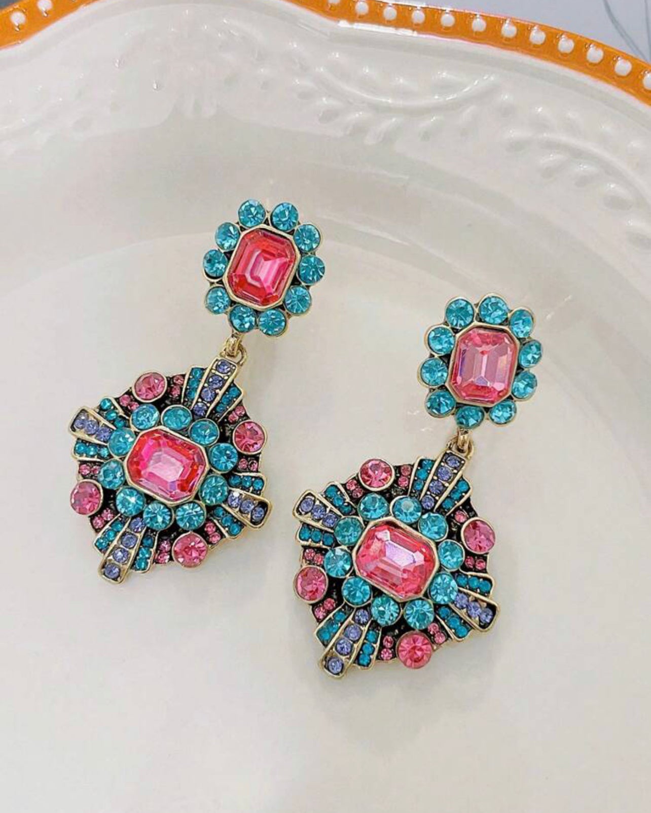 Multifärgade vintageörhängen i medeltidsstil.