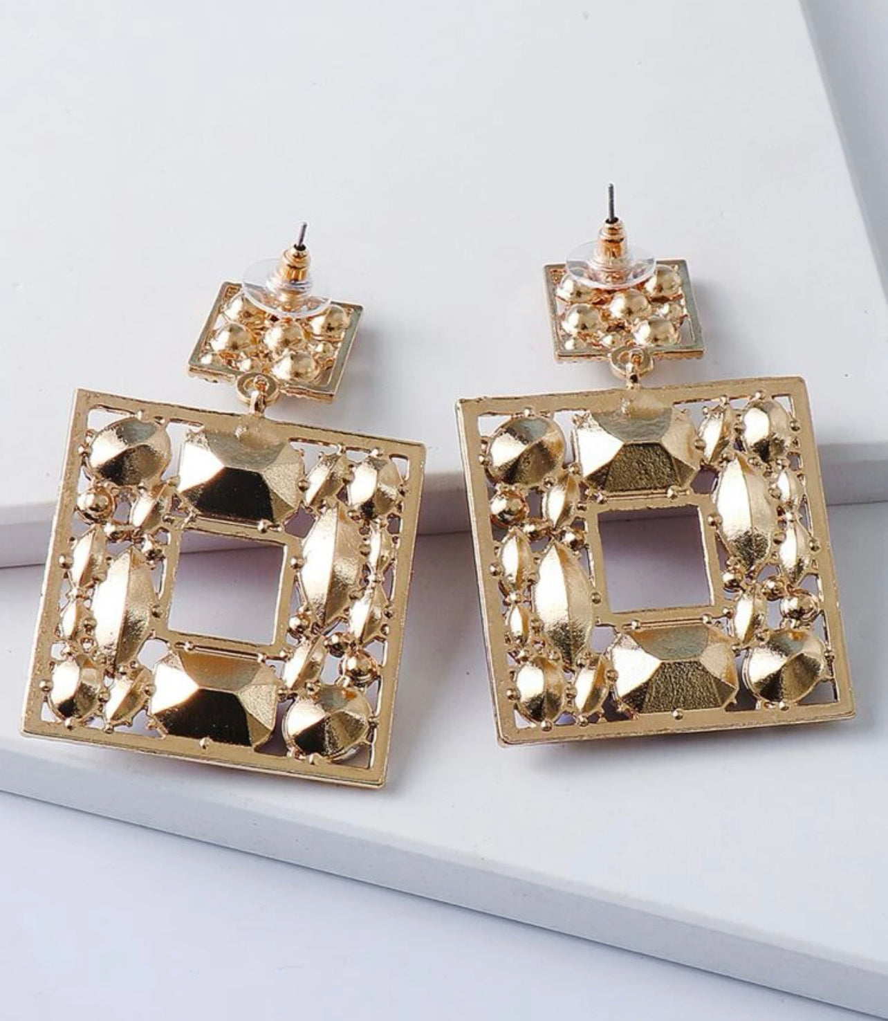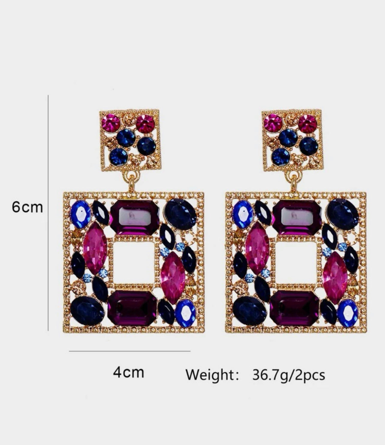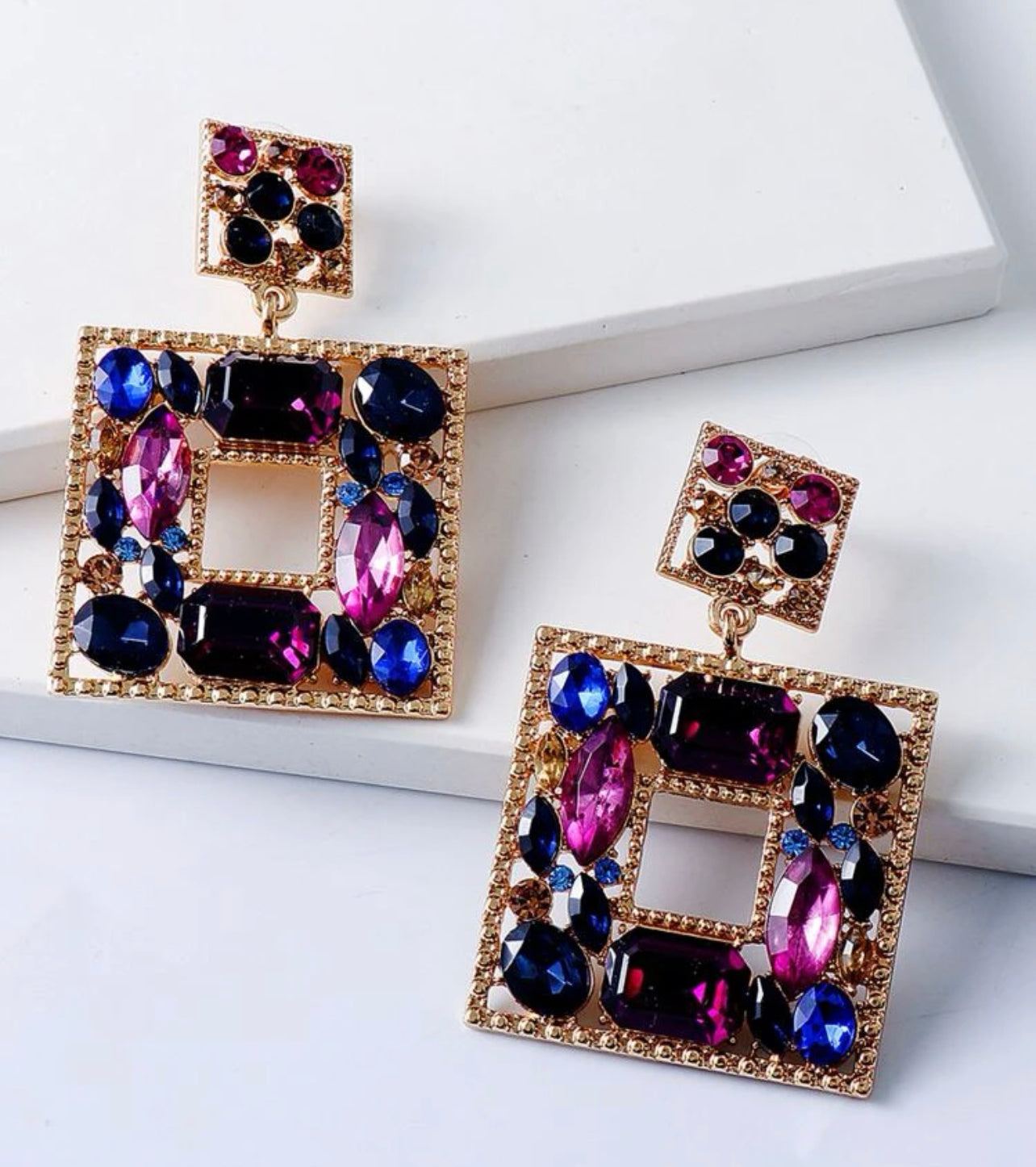 Square droppörhängen i blålila toner