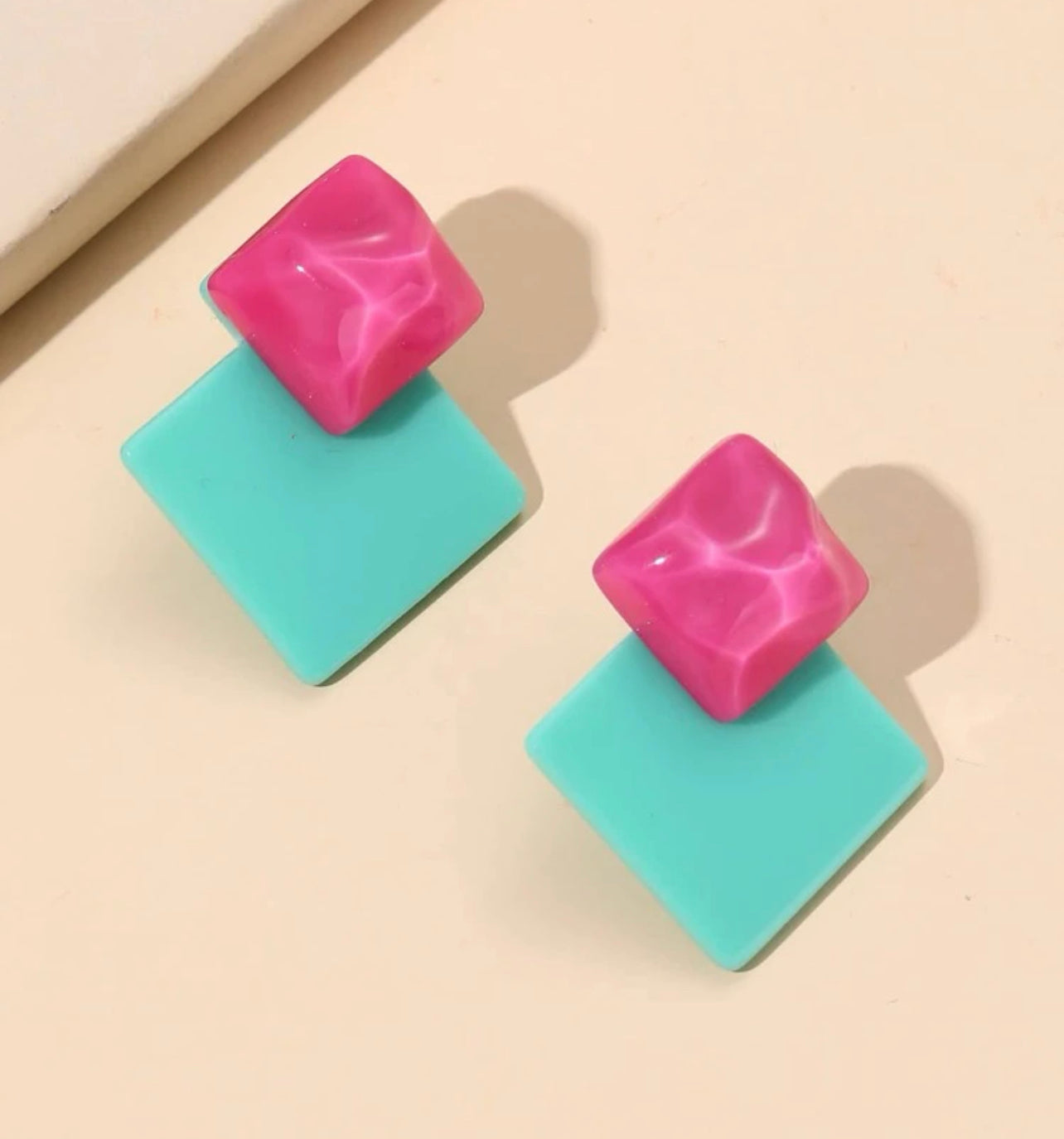 Tvåfärgade fyrkantiga örhängen