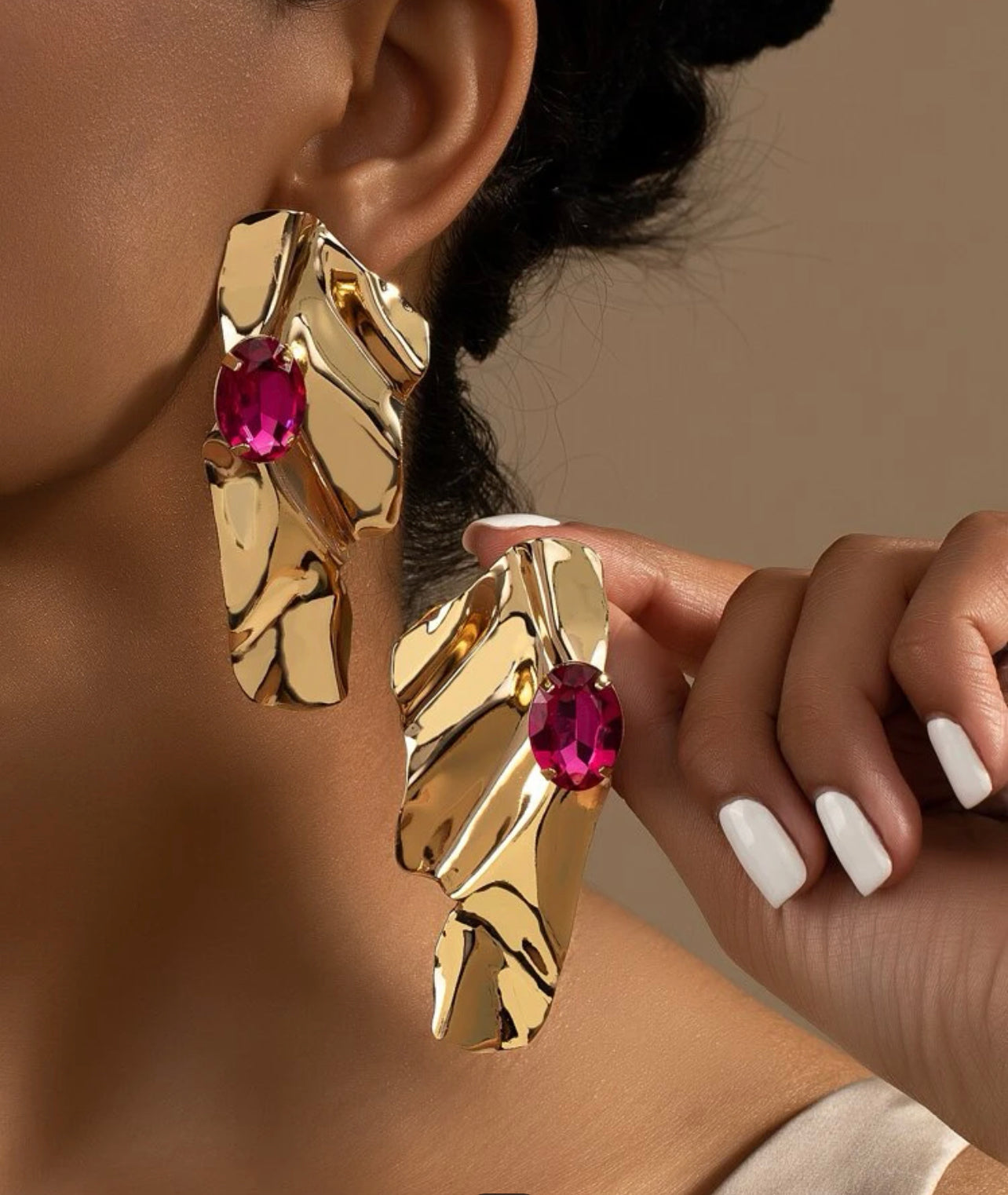 Exklusiva örhängen i guldfärgade toner med maffig sten i mitten.