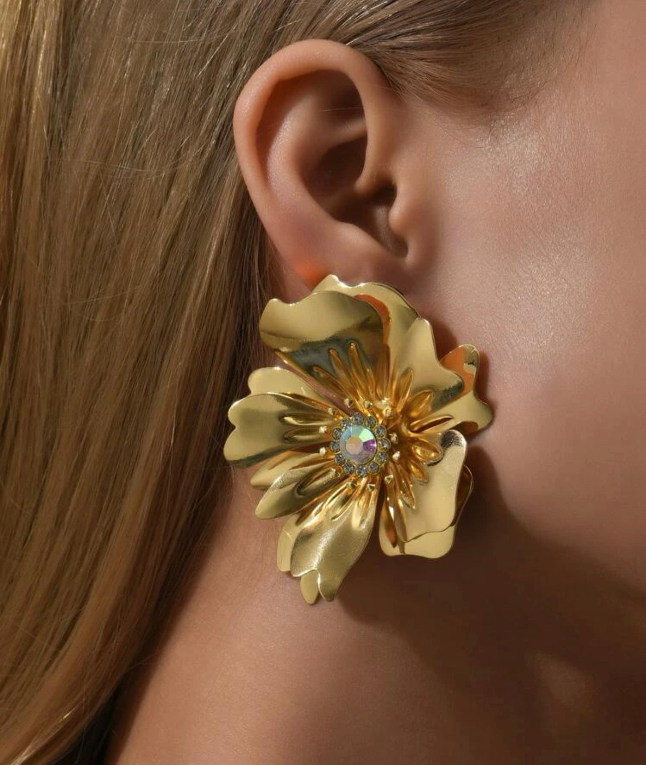 Rhinestone Dekor Flower Design Stud örhängen(gult guld)